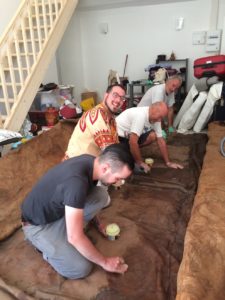 Rémi Borredon l’a descendue en voiture à la Ciotat. Nous avons commencé à assouplir la peau, mais devant l’ampleur de la tâche, nous avons décidé de trouver de l’aide. Quelques semaines plus tard, Rémi est revenu avec deux amis, Baptiste et Thierry.